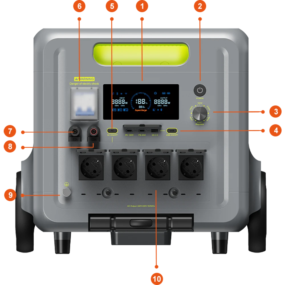En plus du contrôle par application, la puissance d'entrée réglable du F7200 (de 600 W à 3000 W) via un bouton rotatif offre des options de charge rapide ou lente, pour une expérience de charge personnalisée et efficace