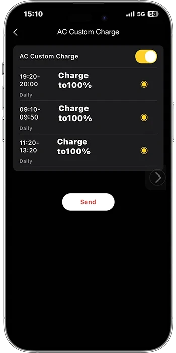 Programmez votre énergie à votre façon. Réglez la production du micro-onduleur pour éviter le gaspillage vers le réseau et planifiez la recharge CA durant les heures creuses, afin de maximiser automatiquement l'efficacité et les économies.