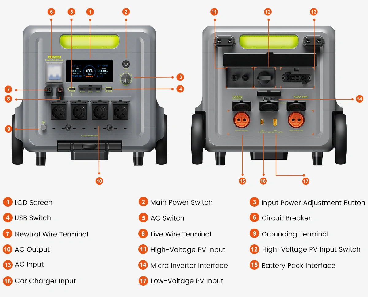 - 4 modes de charge : AC / Solaire / Charge voiture / AC + Solaire.