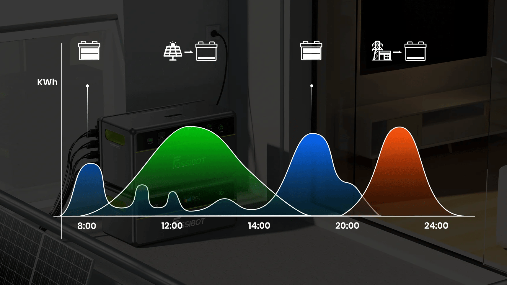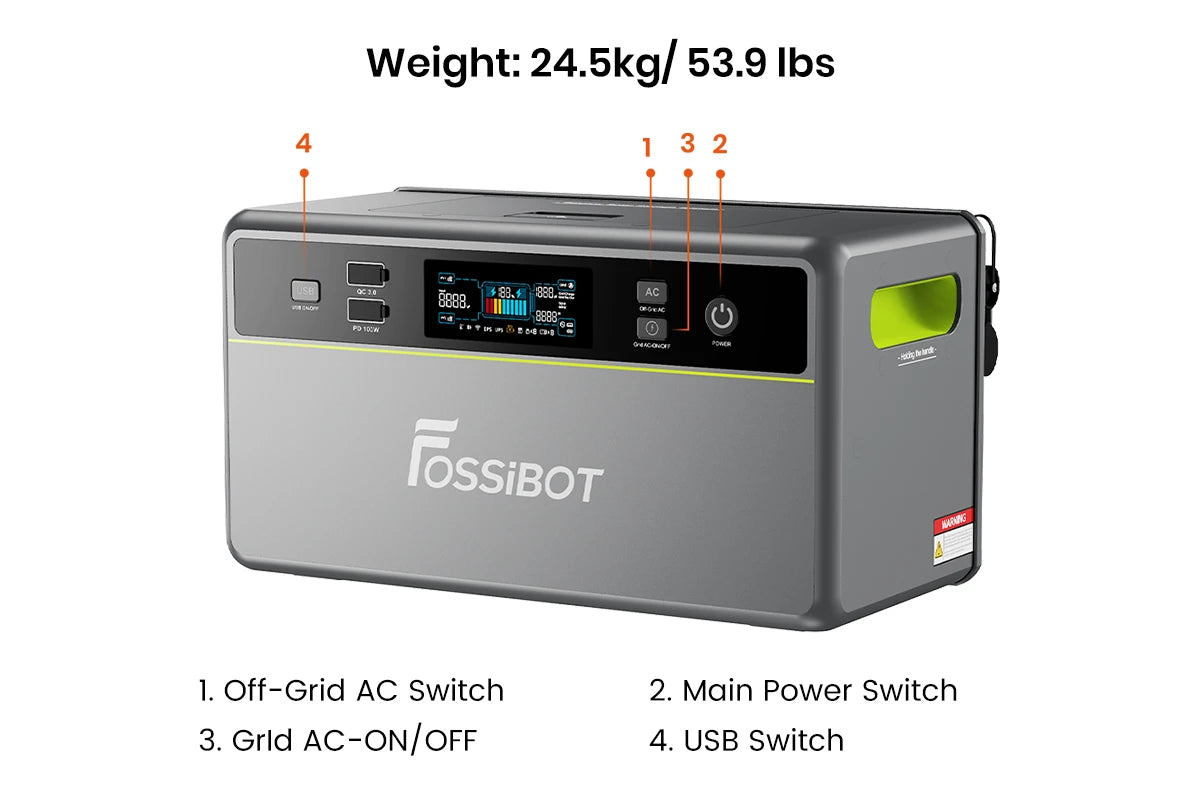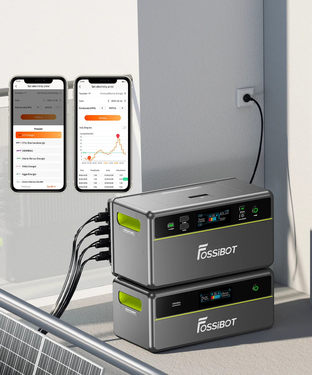 • Économies d’énergie intelligentes : grâce à l’application Fossibot, le système se recharge automatiquement aux tarifs les plus bas et se décharge pendant les heures de pointe, maximisant ainsi les économies.