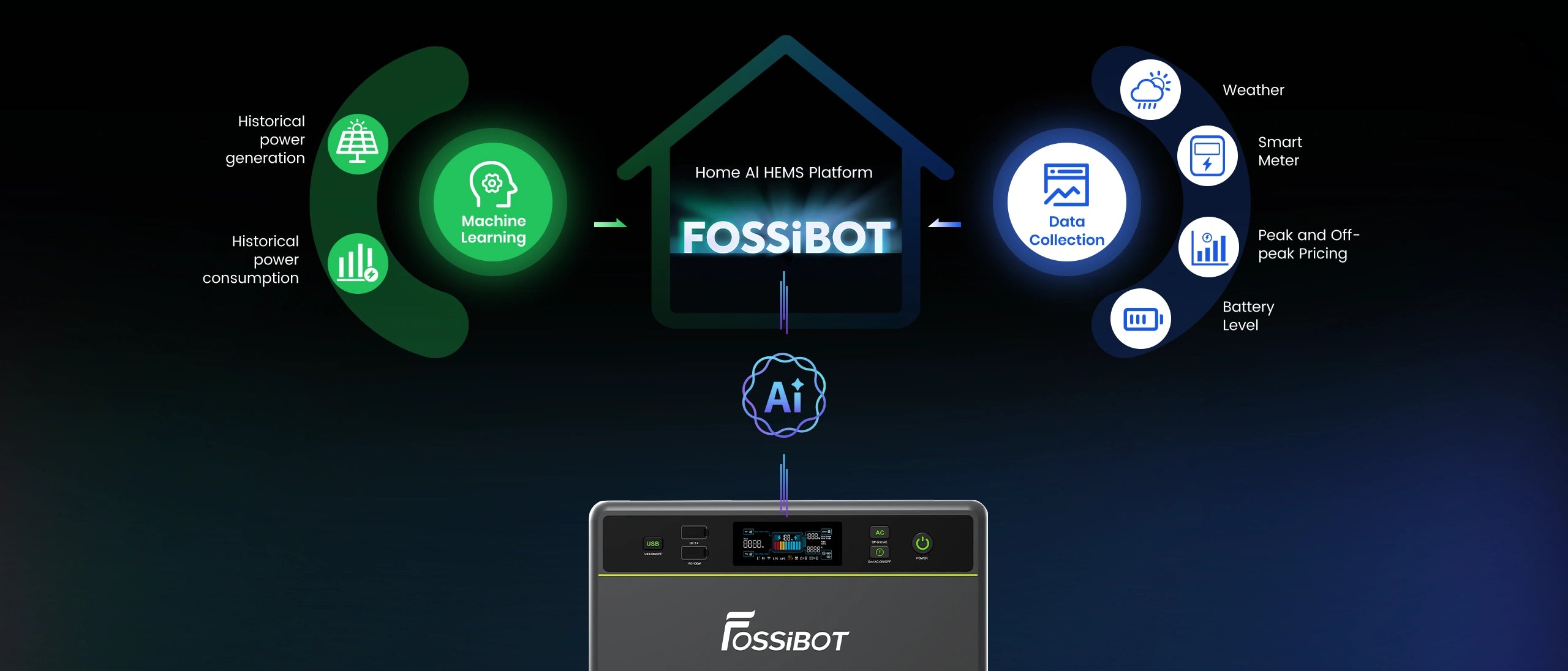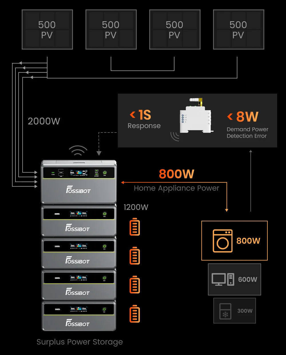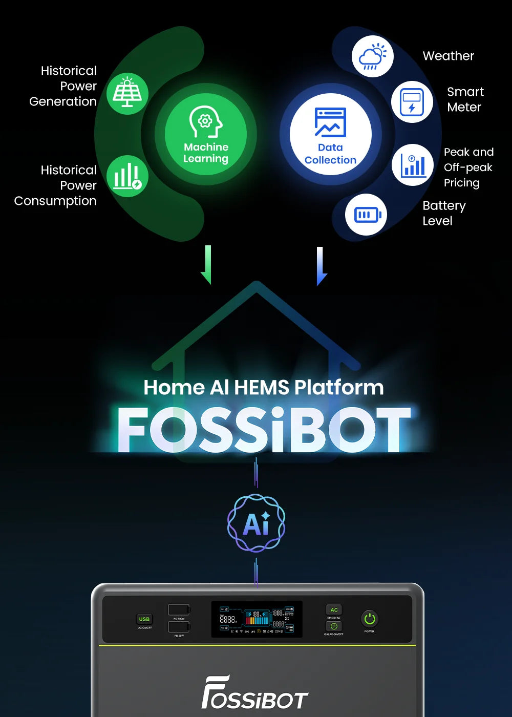 • Économies d’énergie intelligentes : grâce à l’application Fossibot, le système se recharge automatiquement aux tarifs les plus bas et se décharge pendant les heures de pointe, maximisant ainsi les économies.